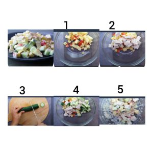3. یک چهارم یک خیار متوسط رو خورد کن و داخل ظرف اضافه کن.