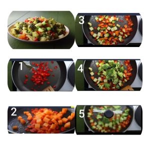 4. هویج و سپس کدو رو خرد کن و به تابه اضافه کن.